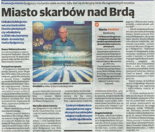 Na ekspozycji prezentowane są wybrane monety bite w mennicy bydgoskiej a pochodzące ze zbioru bydgoskiego Muzeum. Wybijane w Bydgoszczy monety odznaczały się znakomitym opracowaniem artystycznym, gdyż stemple do nich wykonywali m.in. artyści tej rangi, co Samuel Ammon i Jan Höhn. Z Bydgoszczy pochodzi słynna złota moneta studukatowa z 1621 r., o wadze 350 g, uważana za jedną z najpiękniejszych monet europejskich. Na wystawie została ona zaprezentowana dzięki wykorzystaniu nowoczesnej techniki 3D. Monety z mennicy bydgoskiej docierające do wielu zakątków Europy spotykamy w pojedynczych znaleziskach, jak i skarbach.
